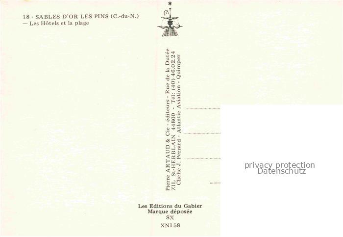 34144813 Sables d Or-les-Pins Dinan 22 Cotes-d Armor Les hôtels et la plage vue aérienne postalisch nicht gelaufen Fliegeraufnahme Erhaltung siehe scans [FriedD77] KatCode: 11170022122179