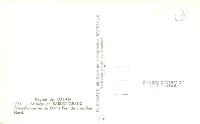 13493964 Sablonceaux Abbaye Chapelle postalisch nicht gelaufen Erhaltung siehe scans [FriedD77] KatCode: 11170017417307