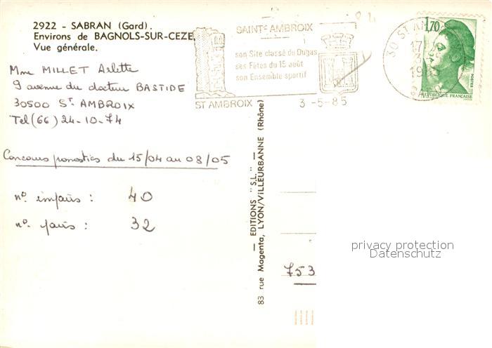 13513582 carte postale Sabran Environs de Bagnols sur Ceze Vue generale postalisch gelaufen Erhaltung siehe scans [WerneD78] KatCode: 11170030230225