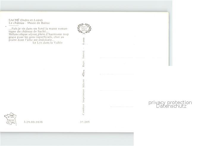 12921633 Sache Chateau Musee Balzac postalisch nicht gelaufen Erhaltung siehe scans [NatalD47] KatCode: 11170037137205
