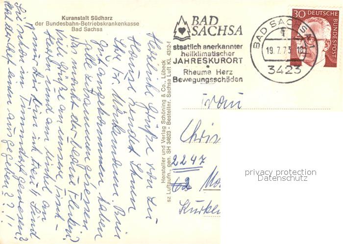 73167490 alte Postkarte Sachsa Harz Bad Fliegeraufnahme Kuranstalt Bundesbahn BKK postalisch gelaufen Erhaltung siehe scans [KathaD81] KatCode: 11110003156003