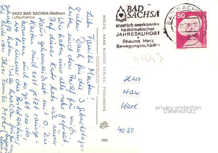 73165282 alte Postkarte Sachsa Harz Bad Fliegeraufnahme postalisch gelaufen Erhaltung siehe scans [KathaD81] KatCode: 11110003156003