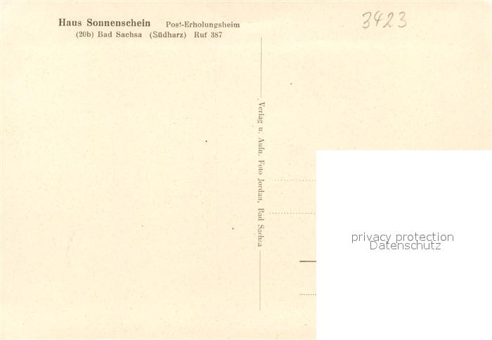 33153826 Sachsa Harz Bad Haus Sonnenschein postalisch nicht gelaufen Erhaltung siehe scans [KathaD81] KatCode: 11110003156003