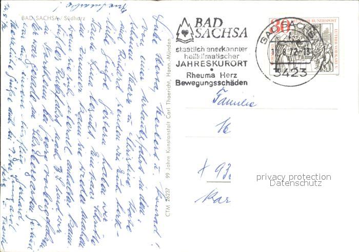 72368225 alte Postkarte Sachsa Harz Bad Ortsansicht postalisch gelaufen Erhaltung siehe scans KatCode: 11110003156003