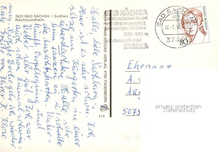72948501 alte Postkarte Sachsa Harz Bad Reichsbundheim postalisch gelaufen Erhaltung siehe scans [KathaD81] KatCode: 11110003156003