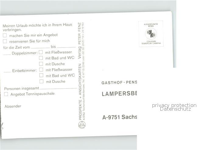 71920163 Sachsenburg Kaernten Gasthaus Pension Lampersberger postalisch nicht gelaufen Erhaltung siehe scans KatCode: 11390212020633