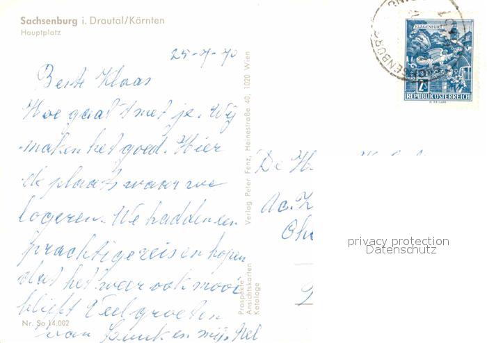 72894137 alte Postkarte Sachsenburg Kaernten Hauptplatz postalisch gelaufen Erhaltung siehe scans [WerneD78] KatCode: 11390212020633
