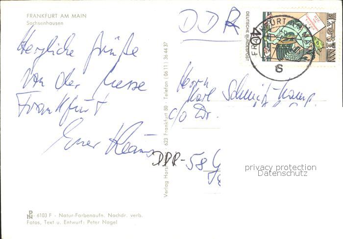 72009809 alte Postkarte Sachsenhausen Frankfurt Teilansicht Stilleben postalisch gelaufen Erhaltung siehe scans KatCode: 11110006412000