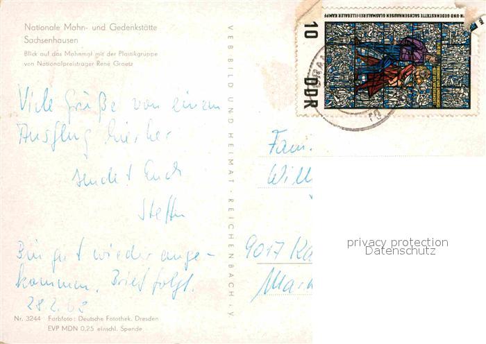 72669123 alte Postkarte Sachsenhausen Oranienburg Mahn- und Gedenkstaette postalisch gelaufen Erhaltung siehe scans [LiesaD40] KatCode: 11110012065256