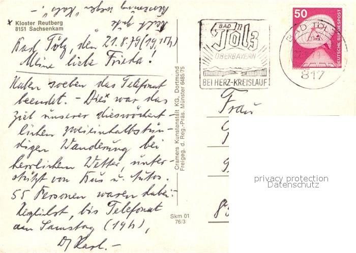 73204260 alte Postkarte Sachsenkam Fliegeraufnahme Kloster Reutberg postalisch gelaufen Erhaltung siehe scans [NatalD47] KatCode: 11110009173141
