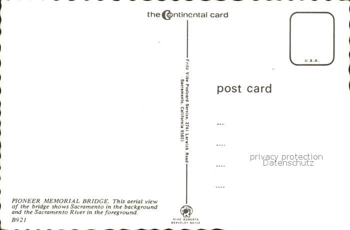 72238617 Sacramento California Pioneer Memorial Bridge aerial view postalisch nicht gelaufen Erhaltung siehe scans KatCode: 14140050000000
