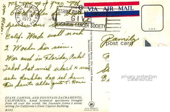 72992248 old postcard Sacramento California State Capitol and Fountain postalisch gelaufen Erhaltung siehe scans [FriedD77] KatCode: 14140050000000