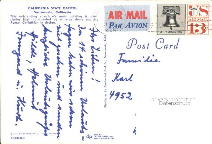 72614484 old postcard Sacramento California State Capitol at California postalisch gelaufen Erhaltung siehe scans [WerneD78] KatCode: 14140050000000