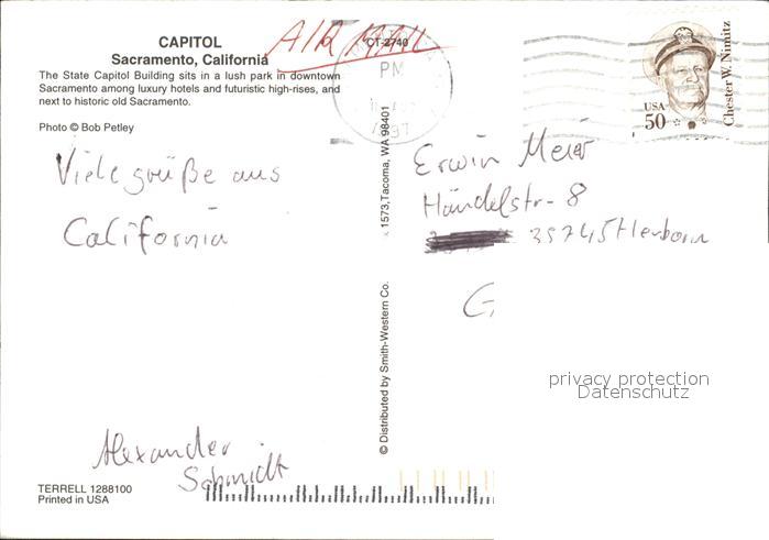 72510677 old postcard Sacramento California State Capitol Building Fountain postalisch gelaufen Erhaltung siehe scans KatCode: 14140050000000