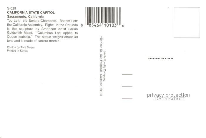 73716869 Sacramento California State Capitol Senate Chambers California Assembly Rotunda Sculpture postalisch nicht gelaufen Erhaltung siehe scans [FriedD77] KatCode: 14140050000000