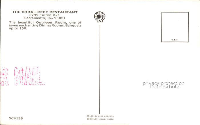 71940908 Sacramento California The Coral Reef Restaurant postalisch nicht gelaufen Erhaltung siehe scans KatCode: 14140050000000