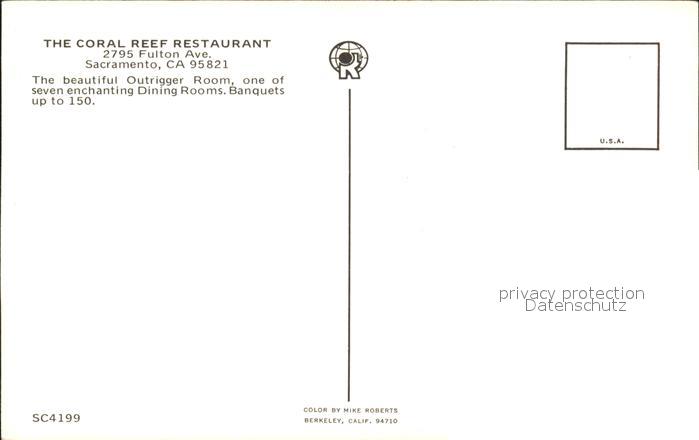 71942920 Sacramento California The Coral Reef Restaurant postalisch nicht gelaufen Erhaltung siehe scans KatCode: 14140050000000