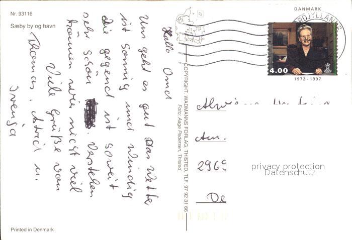old postcard Saeby by og havn Fliegeraufnahme postalisch gelaufen Erhaltung siehe scans