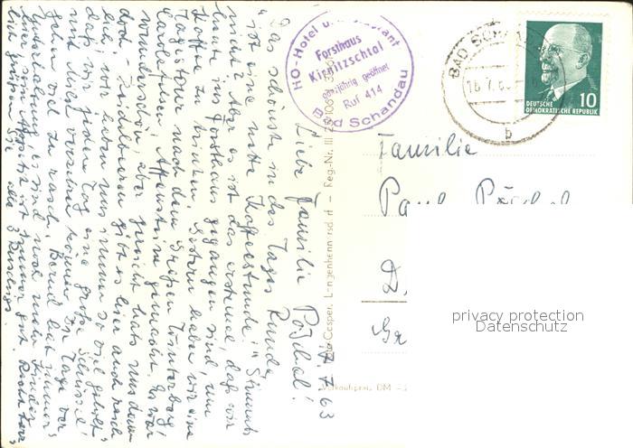 72357523 alte Postkarte Saechsische Schweiz Bad Schandau Forsthaus Lichtenhainer Wasserfall Kirnitzschtalbahn Kuhstall Schrammsteine Aufzug zur Ostrauer Scheibe postalisch gelaufen Erhaltung siehe scans KatCode: 11110014287310