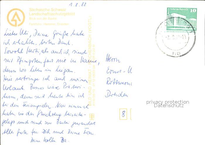 72368808 alte Postkarte Saechsische Schweiz Blick von der Bastei auf die Elbe postalisch gelaufen Erhaltung siehe scans KatCode: 11110014287310
