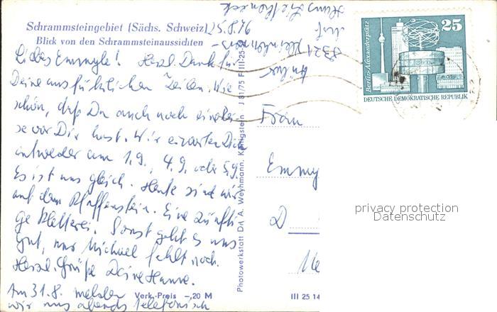 71874651 alte Postkarte Saechsische Schweiz Schrammsteingebiet postalisch gelaufen KatCode: 11110014287310