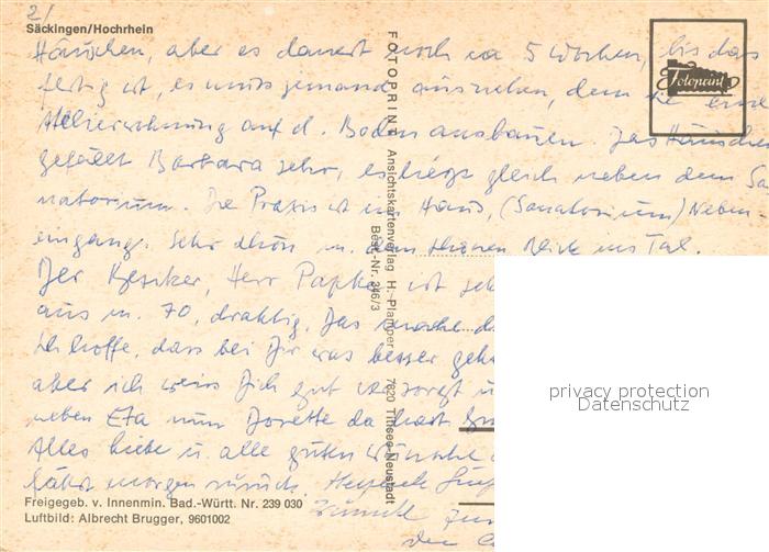 73724484 Saeckingen Bad am Hochrhein Fliegeraufnahme postalisch nicht gelaufen Erhaltung siehe scans [WerneD78] KatCode: 11110008337096