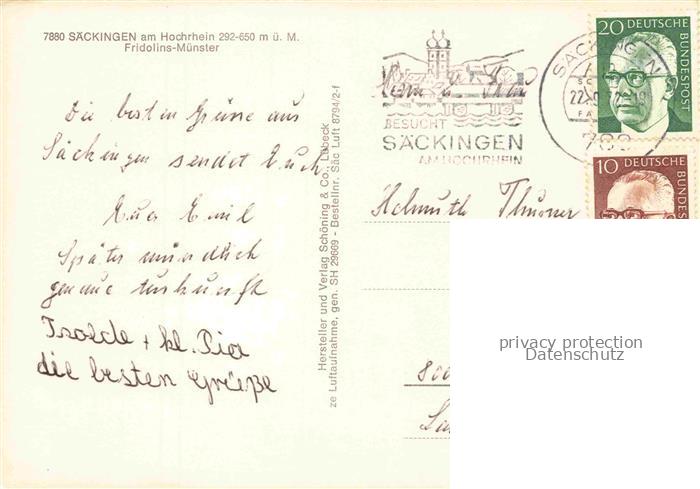 74099861 alte Postkarte Saeckingen Bad Baden BW am Hochrhein mit Fridolins Muenster Fliegeraufnahme postalisch gelaufen Erhaltung siehe scans [WerneD78] KatCode: 11110008337096