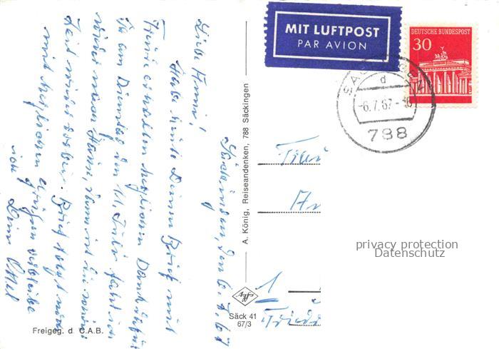 74043057 alte Postkarte Saeckingen Bad BW Blick ueber den Bergsee auf Saeckingen mit Rhein und Alpen Fliegeraufnahme postalisch gelaufen Erhaltung siehe scans [WerneD78] KatCode: 11110008337096