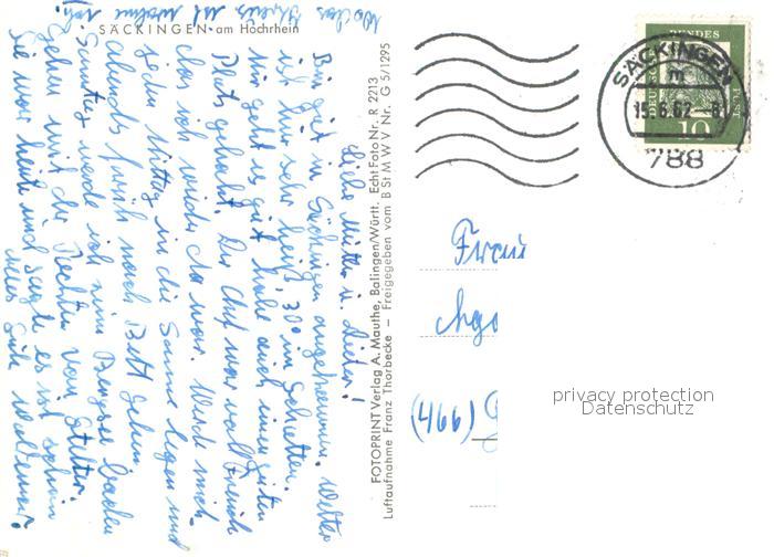 33700742 alte Postkarte Saeckingen Bad Fliegeraufnahme postalisch gelaufen Erhaltung siehe scans [WerneD78] KatCode: 11110008337096