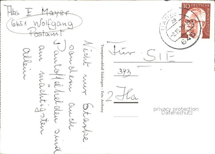 72425843 alte Postkarte Saeckingen Bad Trompeterschloss postalisch gelaufen Erhaltung siehe scans KatCode: 11110008337096