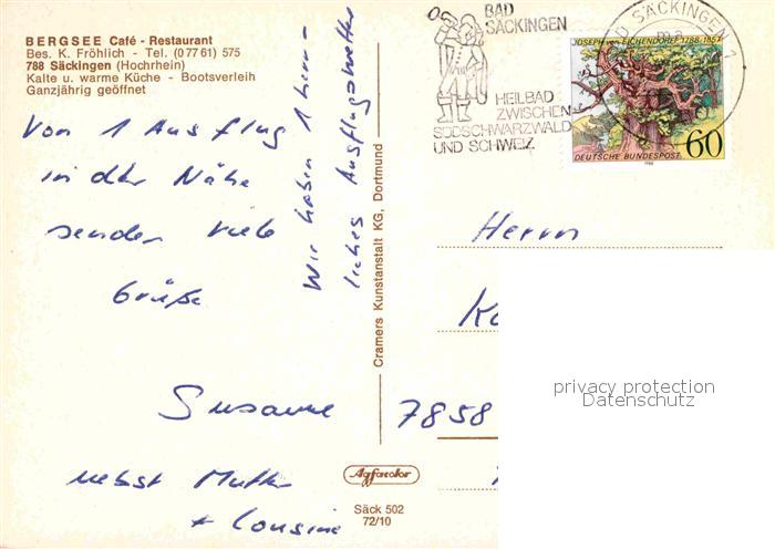 72856458 alte Postkarte Saeckingen Rhein Bergsee Marienbad Marktplatz Panorama postalisch gelaufen Erhaltung siehe scans [WerneD78] KatCode: 11110008337096