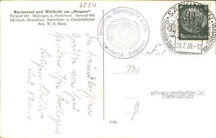 71510386 alte Postkarte Saeckingen Rhein Bergsee mit Eggberg und Waldcafe postalisch gelaufen Erhaltung siehe scans KatCode: 11110008337096