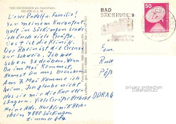 72842506 alte Postkarte Saeckingen Rhein Fliegeraufnahme postalisch gelaufen Erhaltung siehe scans [PaolaD17] KatCode: 11110008337096