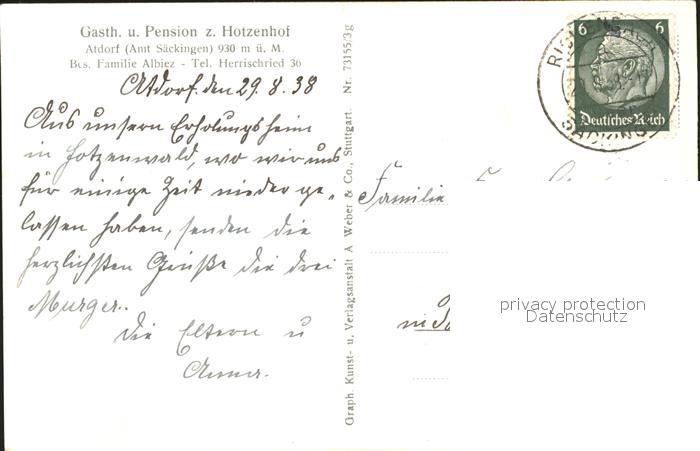 31728661 alte Postkarte Saeckingen Rhein Gasth. Pension z Hotzenhof postalisch gelaufen Erhaltung siehe scans KatCode: 11110008337096