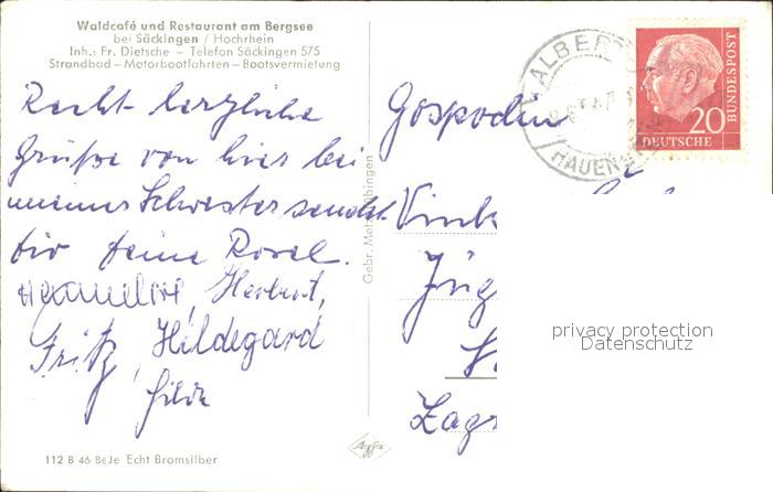 72102267 alte Postkarte Saeckingen Rhein Panorama Waldcafe Restaurant am Bergsee Speisesaal Trompeter von Saeckingen postalisch gelaufen Erhaltung siehe scans KatCode: 11110008337096