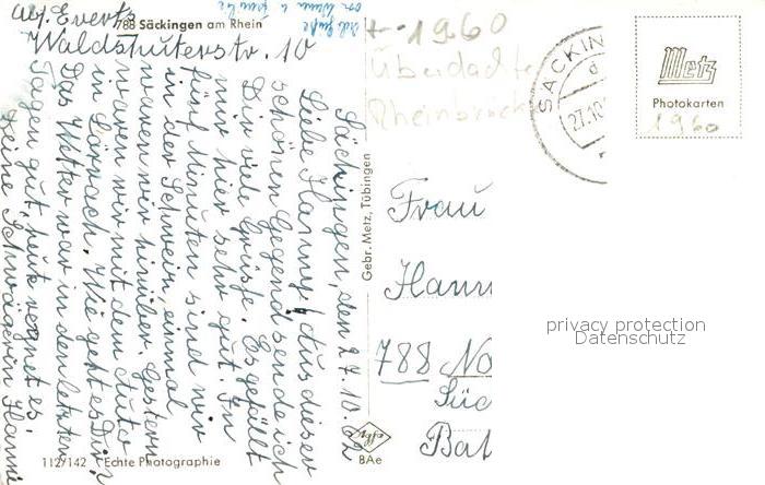 73140973 alte Postkarte Saeckingen Rhein Rheinbruecke postalisch gelaufen Erhaltung siehe scans [FriedD77] KatCode: 11110008337096