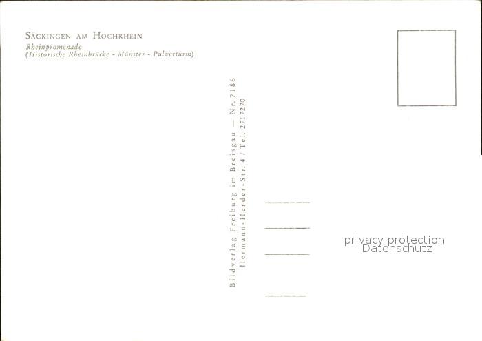71830333 Saeckingen Rhein Rheinpromenade Historische Rheinbruecke Muenster Pulverturm postalisch nicht gelaufen Erhaltung siehe scans KatCode: 11110008337096