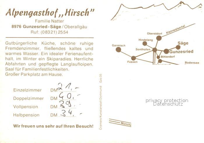 43354191 Saege Gunzesried Alpengasthof Kirsch Gastraeume Panorama postalisch nicht gelaufen Werbekarte (keine Postkarte) Erhaltung siehe scans [WerneD78] KatCode: 11110009780115