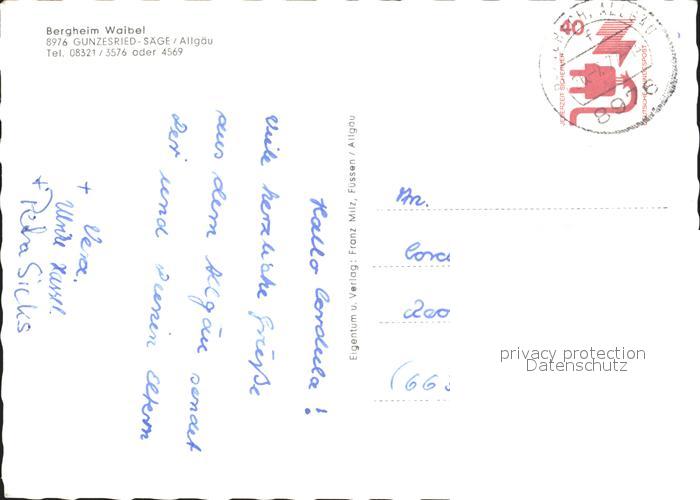 72149614 alte Postkarte Saege Gunzesried Bergheim Waibel postalisch gelaufen Erhaltung siehe scans KatCode: 11110009780115