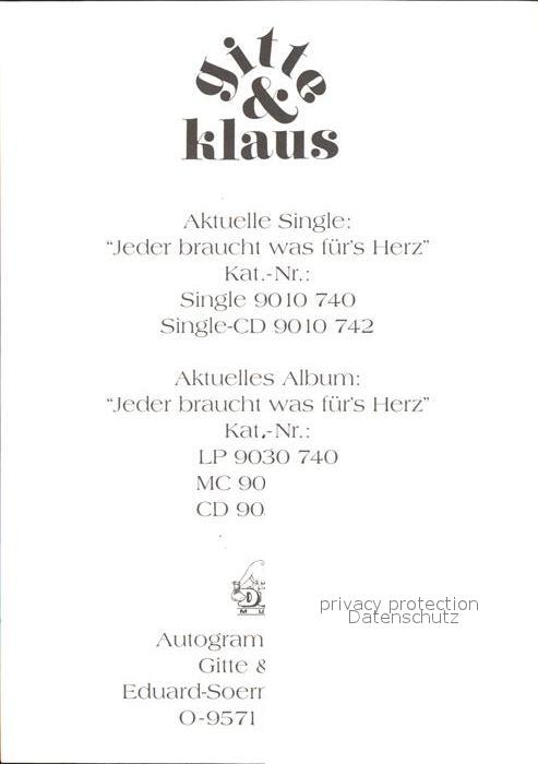 Saenger Band Gitte und Klaus Autogramm postalisch nicht gelaufen Keine Postkarte (siehe scan) Erhaltung siehe scans [PaolaD17]