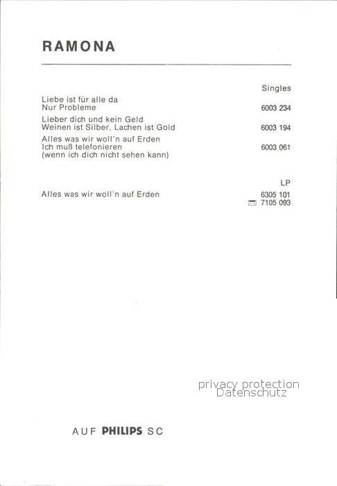 Saenger Band Ramona Autogramm postalisch nicht gelaufen Keine Postkarte (siehe scan) Erhaltung siehe scans