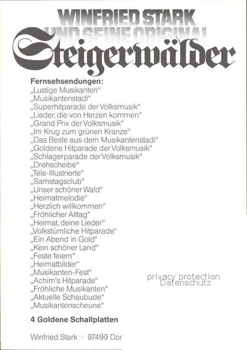 72615321 Saenger Band Winfried Stark und seine Original Steigerwälder KatCode 22560000003000
