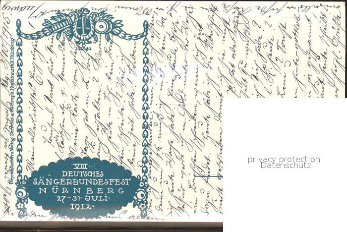 Saengerbundfest VIII. Nuernberg Alte Musik Klavier Cello Geige Globus Kuenstlerkarte Franz P. Glass postalisch nicht gelaufen Erhaltung siehe scans