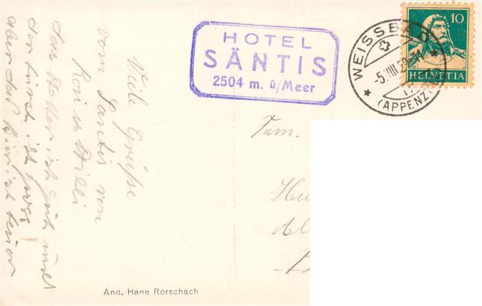 13925325 alte Postkarte Saentis 2504m AR Felsentrappe ob blau Schnee postalisch gelaufen Erhaltung siehe scans [FriedD77] KatCode: 11470280010786