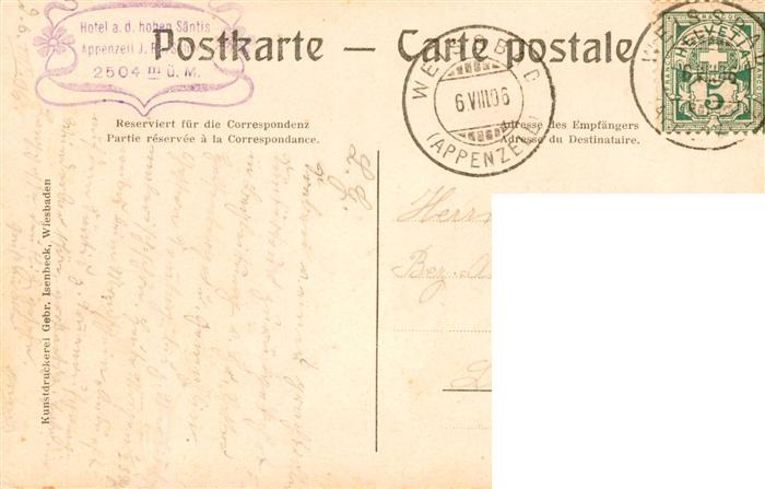 13920637 alte Postkarte Saentis 2504m AR Hotel auf dem hohen Saentis postalisch gelaufen Erhaltung siehe scans [WerneD78] KatCode: 11470280010786