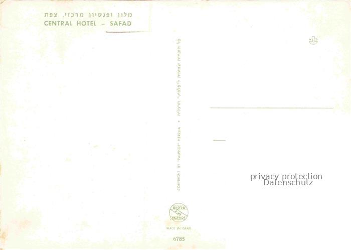 74122012 Safad Galilaea Israel Central Hotel postalisch nicht gelaufen Erhaltung siehe scans [WerneD78] KatCode: 13080