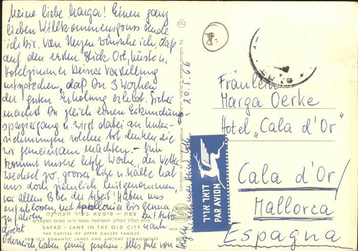 old postcard Safad Galilaea Lane in the Old City postalisch gelaufen gute Erhaltung