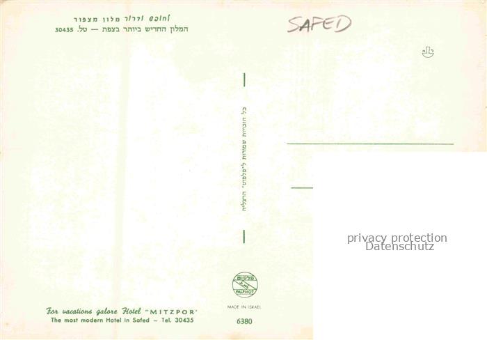 74142413 Safed Saffed Israel Hotel Mitzpor postalisch nicht gelaufen Erhaltung siehe scans [FriedD77] KatCode: 13080