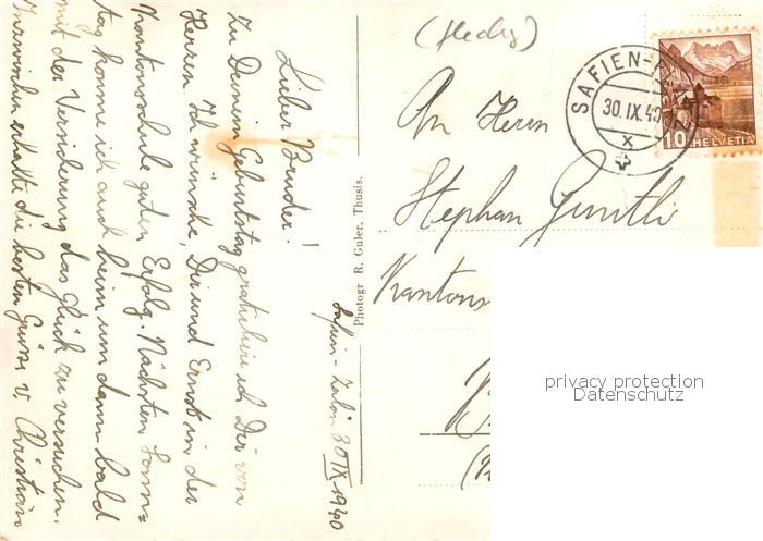13853134 alte Postkarte Safien-Egschi GR Panorama mit Bruschghorn Blick ins Safiertal postalisch gelaufen Erhaltung siehe scans [FriedD77] KatCode: 11470100355490