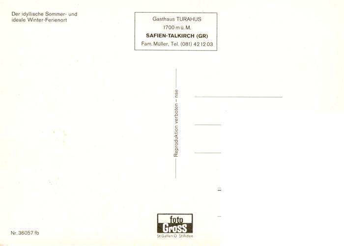 13889124 Safien Thalkirch GR Gasthaus Turahus postalisch nicht gelaufen Erhaltung siehe scans [WerneD78] KatCode: 11470100355490